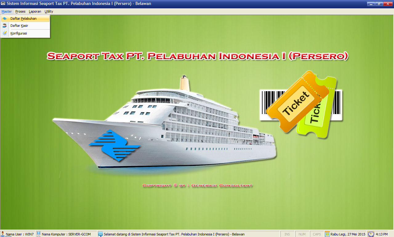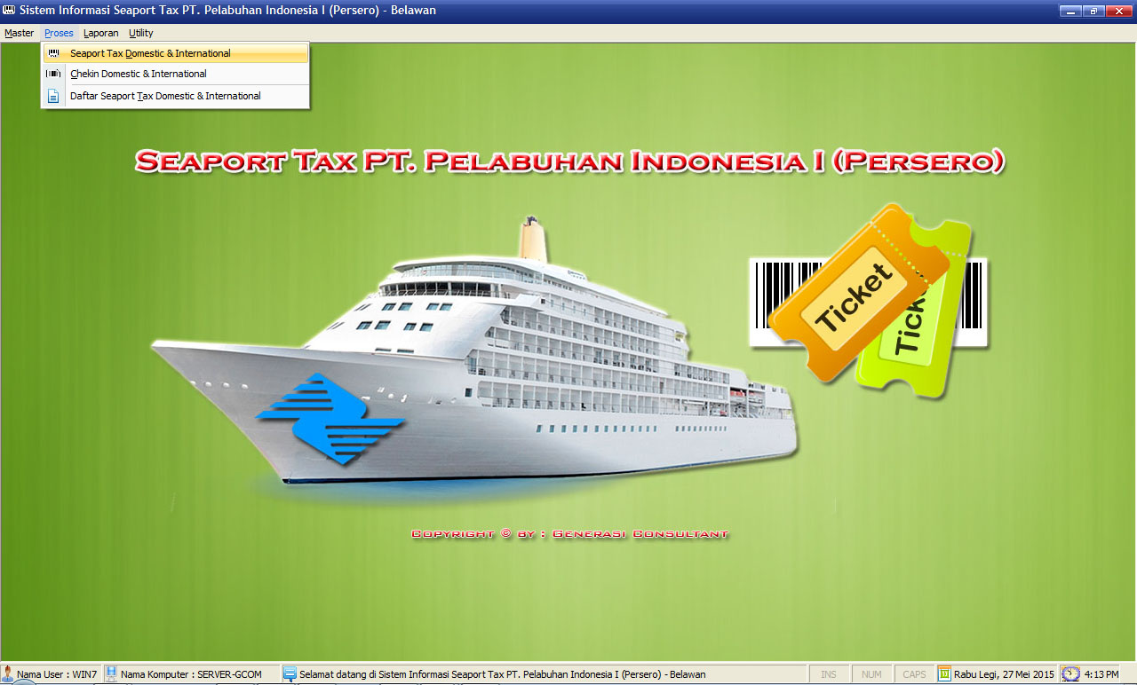 Aplikasi Barcode Ticketing PelabuhanDibaca: 3231 kaliSoftware Program Aplikasi Barcode Ticketing Pelabuhan - aplikasi barcode ticketing seaport tax pelabuhan sangat cocok untuk pelabuhan di Indonesia. Silahkan hubungi kami di 08126514562 Fitur Program Aplikasi Barcode Ticketing Pelabuhan :