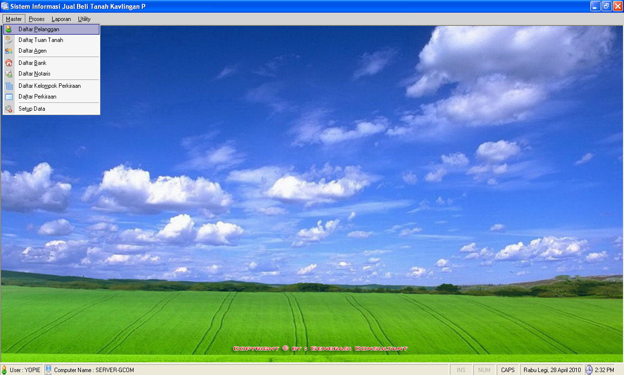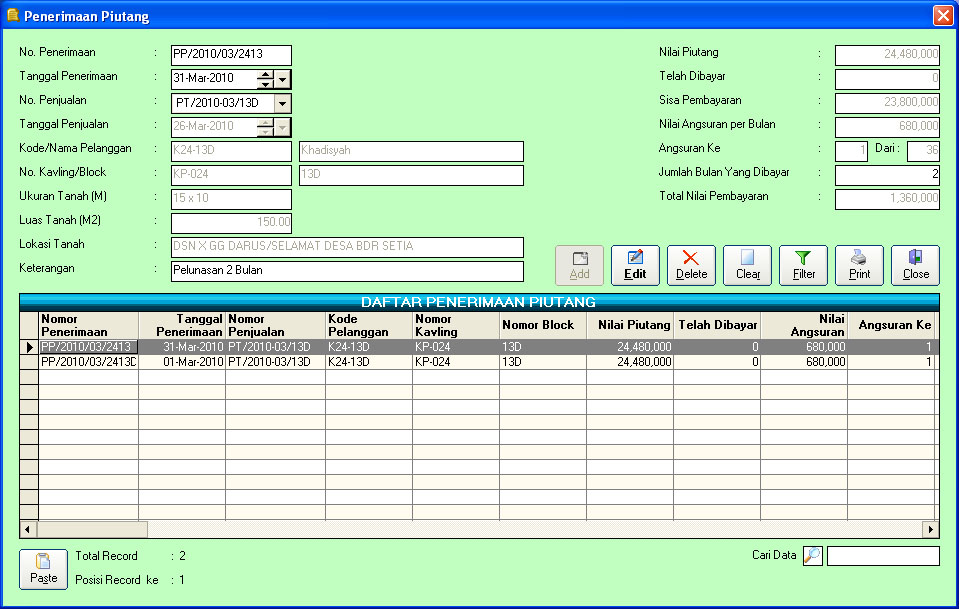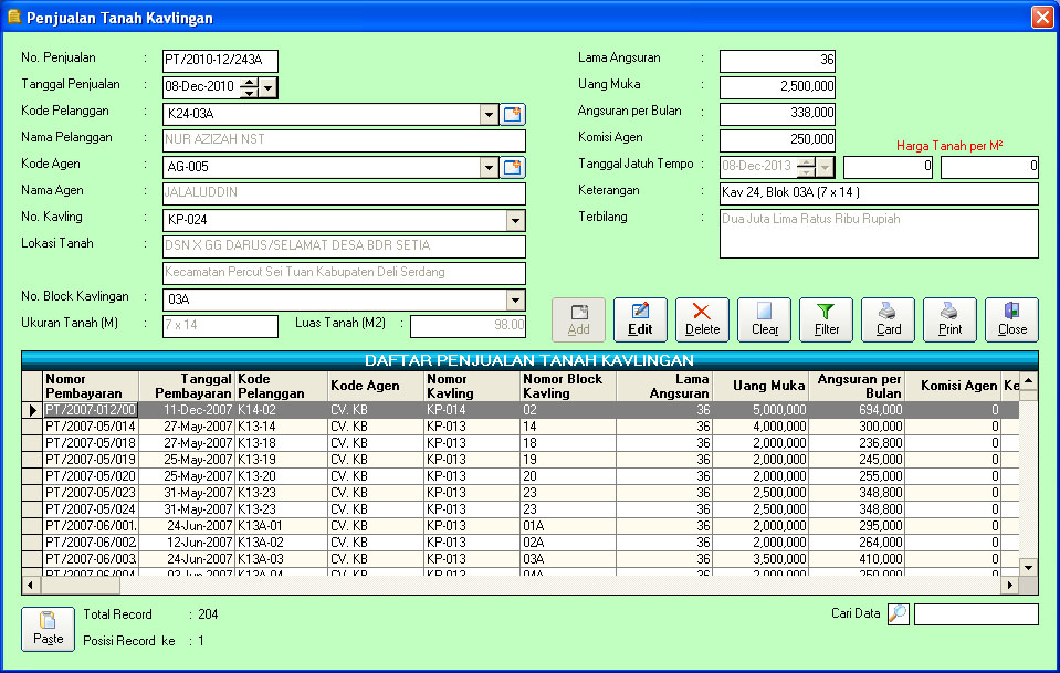 Aplikasi Jual Beli Tanah Kavlingan Untuk Tuan TanahDibaca: 4331 kaliSoftware Program Aplikasi Jual Beli Tanah Kavlingan - Aplikasi jual beli tanah kavlingan sangat cocok untuk tuan takur dimana sistem jual beli tanah dapat dilakukan dengan sistem tunai dan kredit. Fitur Program Aplikasi Jual Beli Tanah Kavlingan Untuk Tuan Tanah :