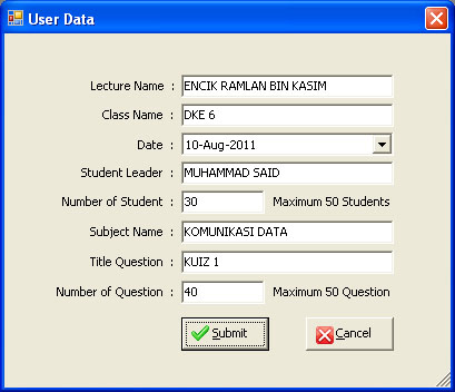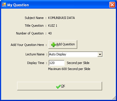 Aplikasi Personal Response SystemDibaca: 3855 kaliProgram Aplikasi Personal Response System - Program Aplikasi Personal Response System ini sangat mirip dengan metode Clickers in The Classroom, cocok sebagai alat bantu bidang pendidikan. Fitur Program Aplikasi Personal Response System :