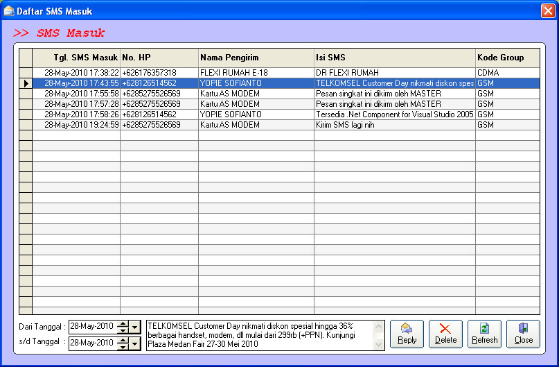 - Filter Data SMS Masuk/Keluar Berdasarkan Periode Tertentu
