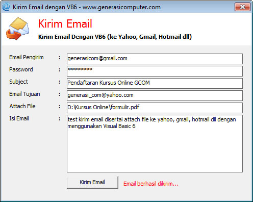 Source Code Kirim Email Dengan VB6Dibaca: 5569 kaliSource Code Kirim Email Dengan VB6 - source code ini sangat cocok untuk digabungkan dengan program yang membutuhkan proses kirim laporan via email Fitur Program Source Code Kirim Email Dengan VB6 :